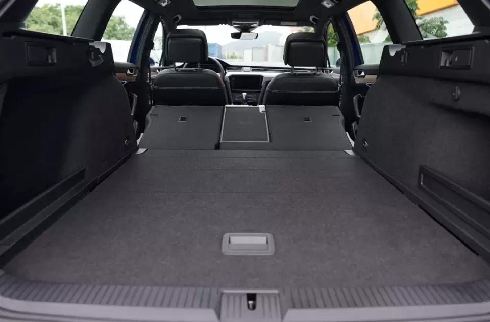 新款蔚揽无论是在尾门的开合还是后备箱的内部空间,以及后排座椅放倒方面,都保留了之前的设计。站在车尾也能使后排座椅4:2:4比例放倒,让后备箱容积可从592L扩展到最大的1725L,甚至都可以放进、像冰箱这样的小家电,更不用说旅行时常见的一些户外装备了。三个座椅都能独立放倒,在行驶途中后排也能直接拿到后备箱的物品。