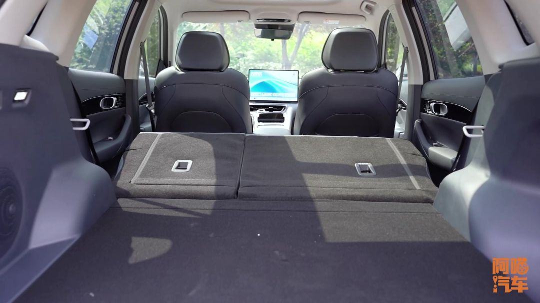 如果这里再搞个放水口什么的,妥妥的钓鱼佬的神器。如果把后排座椅放倒的话,它可以形成一个接近纯平的空间,如果说身高在一米七以内,放一个垫子,都可以当床车了。