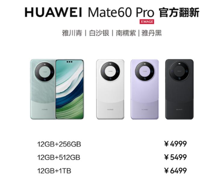 华为Mate60Pro目前华为商城全新的价格为5699元,官方翻新手机的价格要便宜700元。