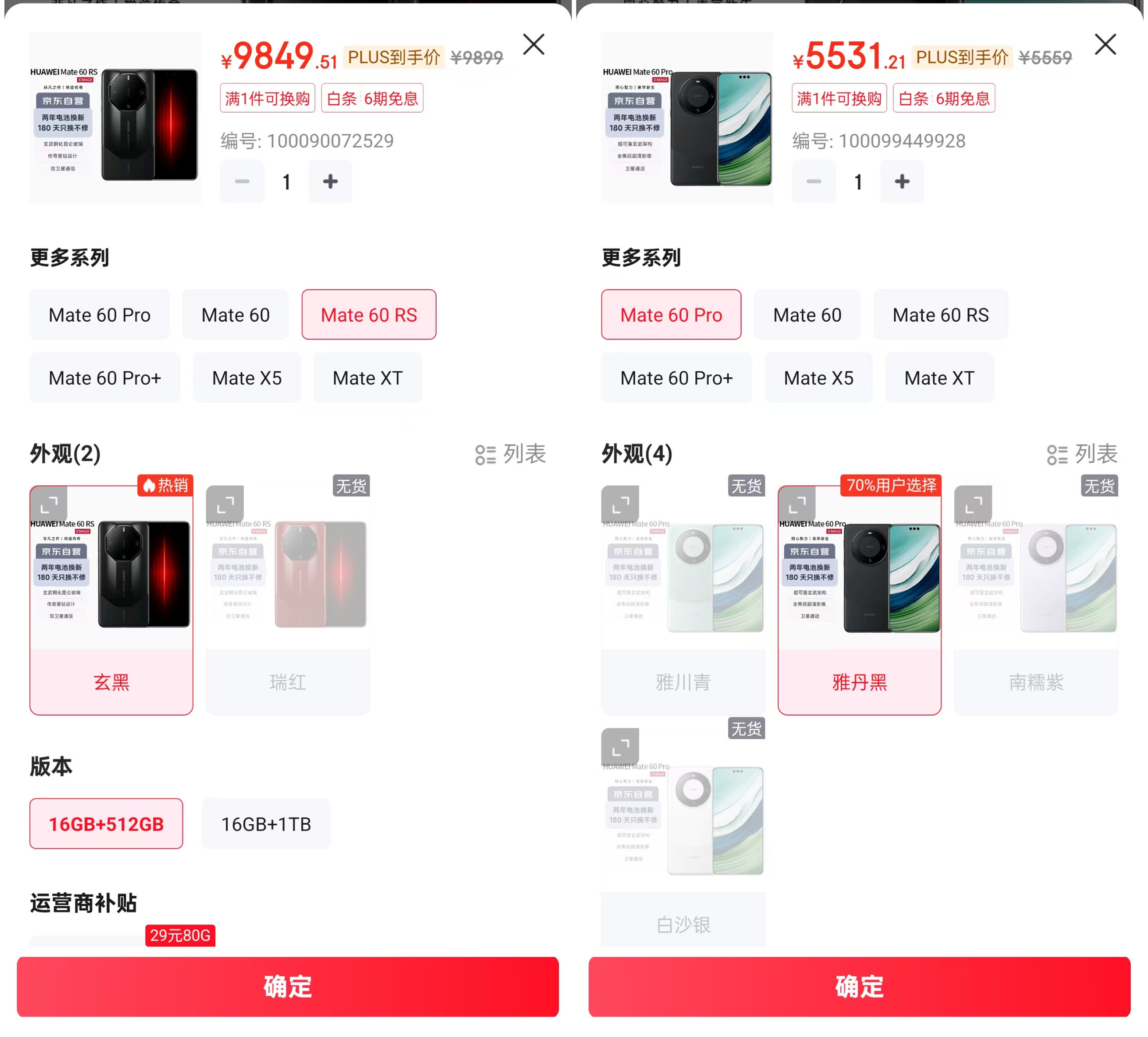 另外华为Mate60RS非凡大师的价格,第三方渠道为9849元,也比官方翻新机的10099元要便宜。
