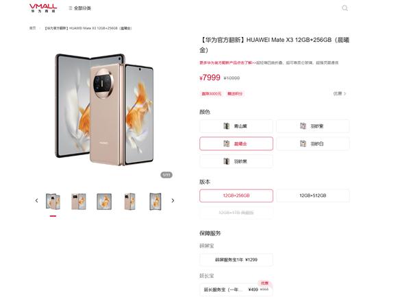 华为MateX3目前的价格只有7999元,要知道华为MateX3刚发布的时候,售价为12999元。