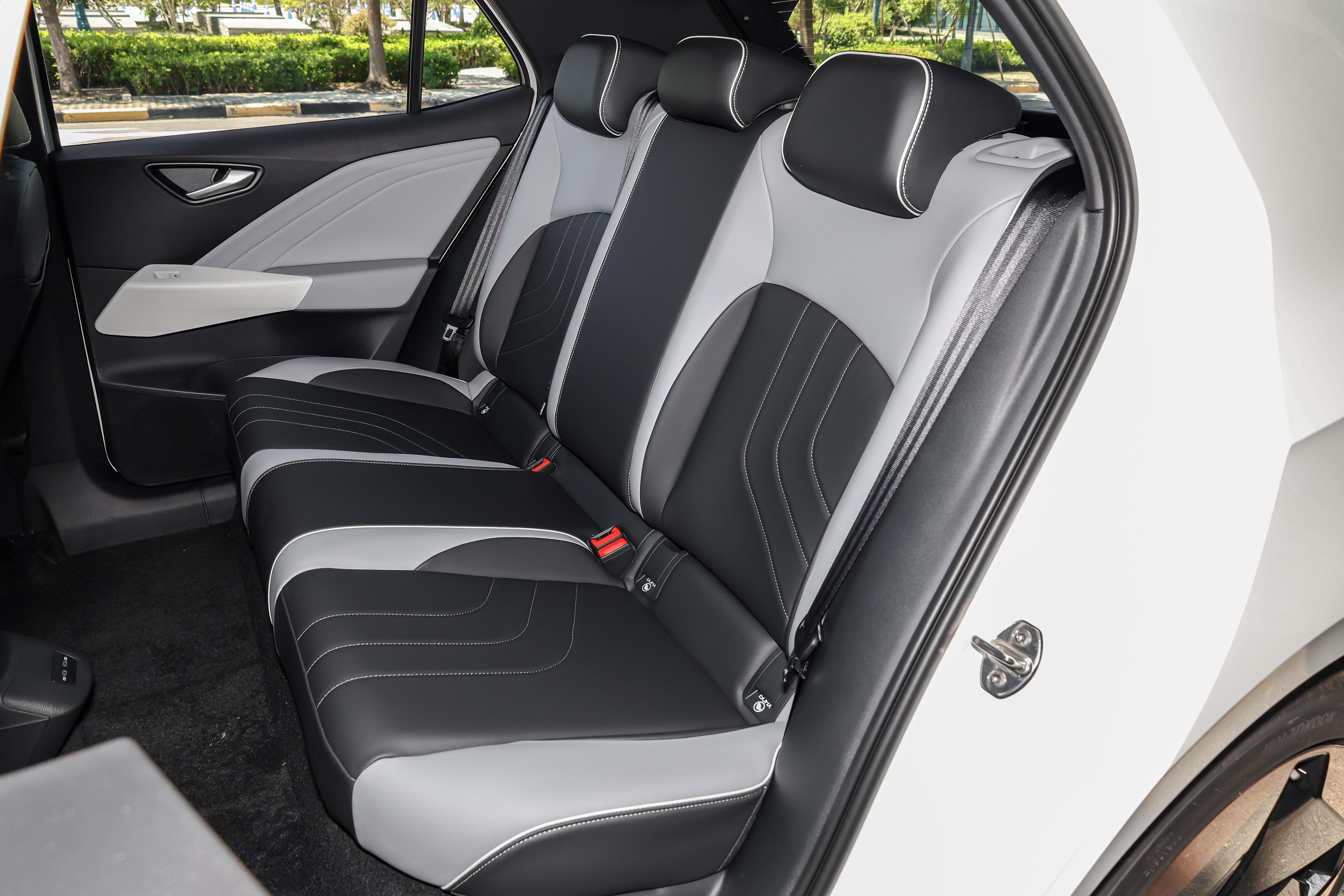 而大众ID3的后排空间在这个级别 的车型里面后排空间可以说是不错的,头部空间有1拳,腿部空间有2拳。不过由于大众ID3的后排的中间座椅还配备了安全头枕,整体的乘坐体验还是很不错的,起码保障了后排中间的乘客的安全。