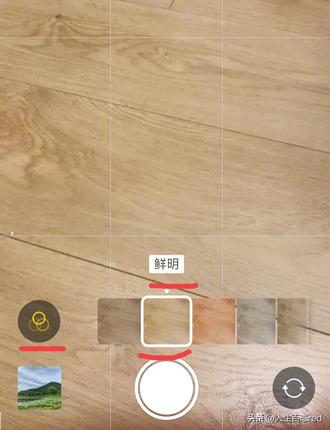 设置好之后,再打开相机,准备拍照,在拍照之前,选择好拍照里面的滤镜选项,我一般选择“鲜明”色滤镜进行拍摄,