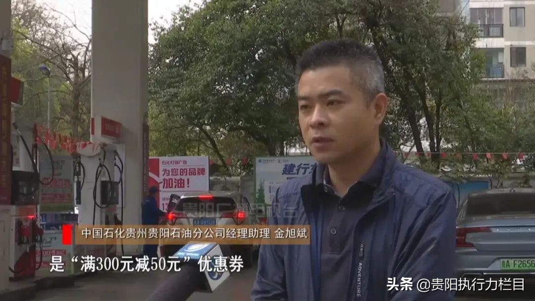中国石化贵州贵阳石油分公司 经理助理 金旭斌:康女士在参与我们“砸金蛋”活动中获得的四等奖是“满300元减50元”的优惠券,这个券的使用规则在我们全省中石化(加油站使用)都是统一标准,实际上就是加油满300元减50元。