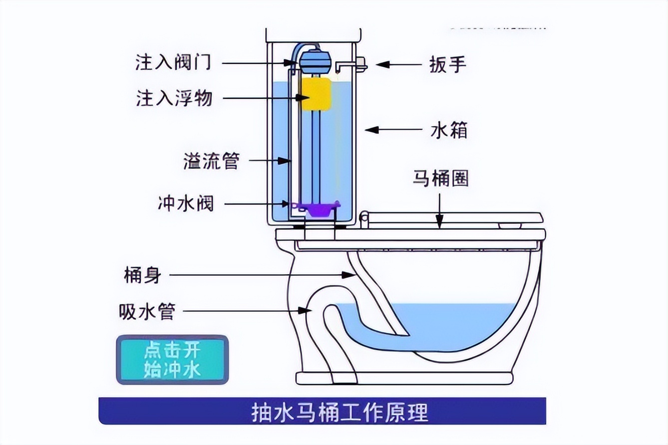 结束语:冲水马桶的大致结构,如下图: