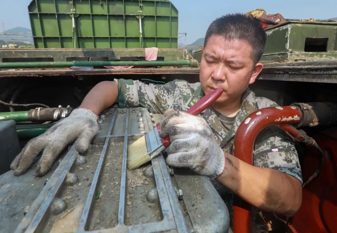 他身形较壮,皮肤黝黑,面容沧桑,单从外表看不出只有31岁,笑起来满是真诚,纯粹又质朴,是个普通的兵的样子。