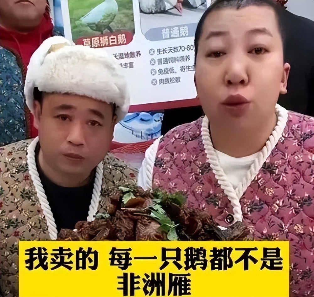 这一幕是不是像极了东北雨姐2023年带货东北大鹅,当时就有人质疑她带货的大鹅实际上是非洲雁,产品包装上的商家地址也在山东。