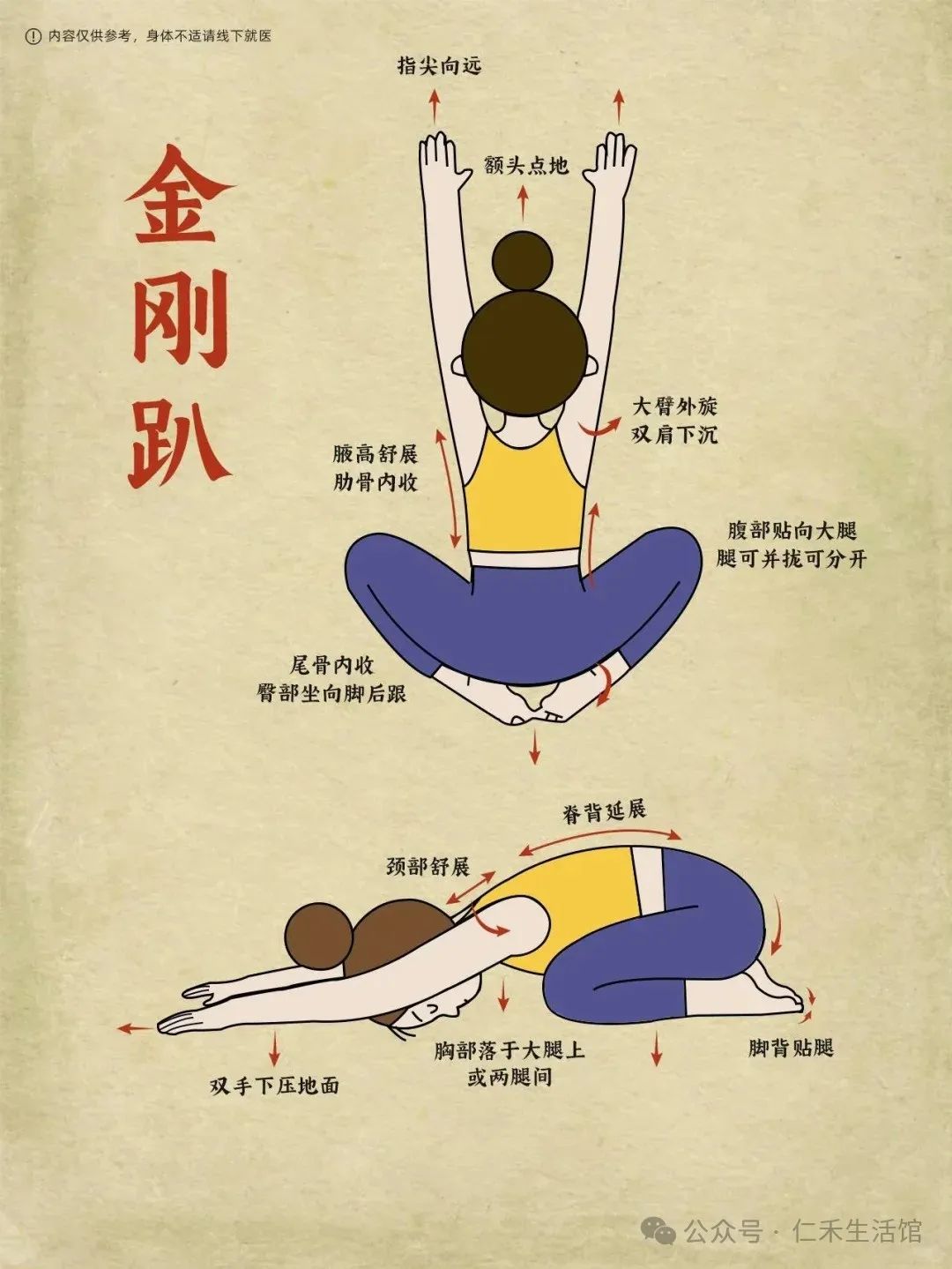 4、减缓压力和放松身心:与其他瑜伽姿势一样,金刚趴也能帮助放松身心,减轻精神压力和焦虑,从而有助于皮肤的健康和整体的年轻状态。
