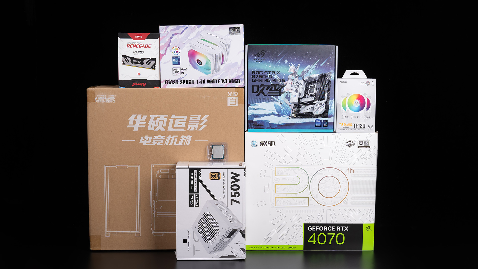 本次装机CPU是酷睿i5-14600KF散片,搭配来自华硕ROG STRIX B760-G GAMING WIFI S主板(简称B760 小吹雪 S),包装依旧是以雪武战姬、主板渲染图和烫银LOGO作为主格调,和上一代ROG B760 小吹雪风格是一致的。
