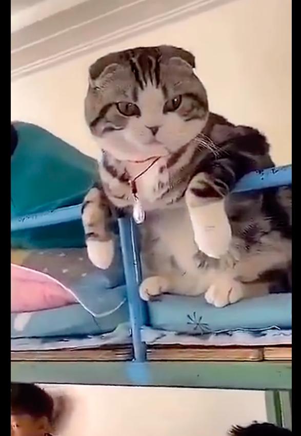 就有这么一位网友,在宿舍里养了只猫咪。儿子那天放学,就带着一群同学来宿舍看电视来了。只见同学们都乖乖的坐在床上,上面下面都是挤满了人啊!大家都是目不转睛盯着屏幕看!不过在孩子中间,我们却看到了那只猫咪,也和同学们一样,趴在床上看电视呢,爪子还搭在床边围栏上!