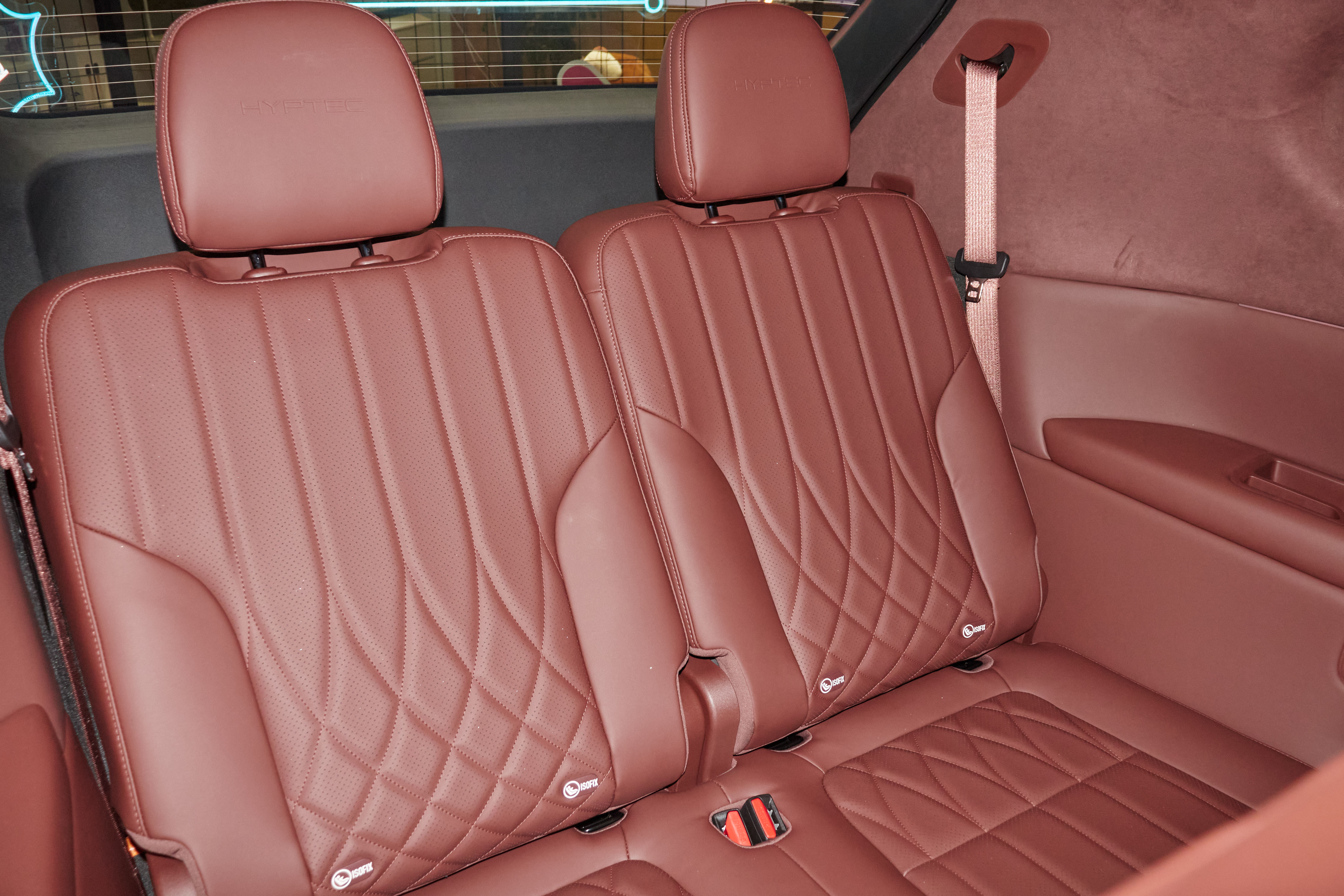 昊铂HL全车座舱采用Nappa真皮及Alcantara麂皮包覆(不含荣耀定制版),车内提供2+3式5座、2+2+2式6座两种布局,前排座椅全系标配加热/通风/10点按摩,且具有主驾座椅记忆功能。针对5座车型,其后排座椅支持加热/通风/10点按摩、靠背电调、4/6分放倒、中间座位头枕、中央扶手,副驾后侧座椅还带有4向电动腿托;针对6座车型,其第二排配备双零重力座椅,提供固定扶手及液晶屏,并支持加热、通风、18点按摩、12向电动调节、双4向电动腿托功能。