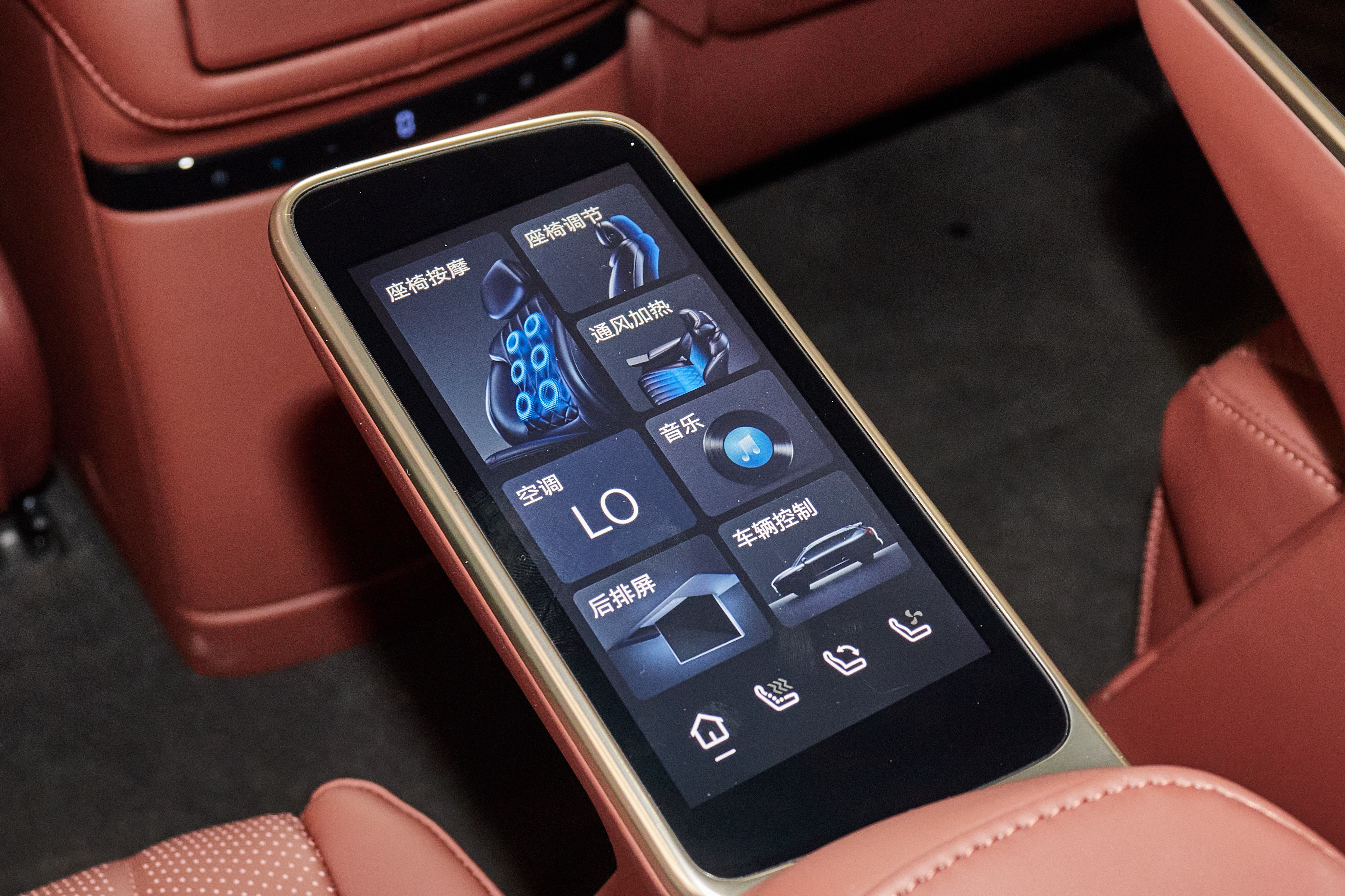 其他配置方面,昊铂HL全系标配双50瓦手机无线充电面板、车载行车记录仪、三区恒温空调、24扬声器ADIGO SOUND音响、豪华渐变色氛围灯等,中高配车型配备有车载冰箱,顶配车型额外提供智能发光触控按键功能。此外从实车上还可以看到,昊铂HL部分车型拥有17.3英寸吸顶式后排娱乐屏、后排小桌板,最终配置详情还需以官方公布为准。