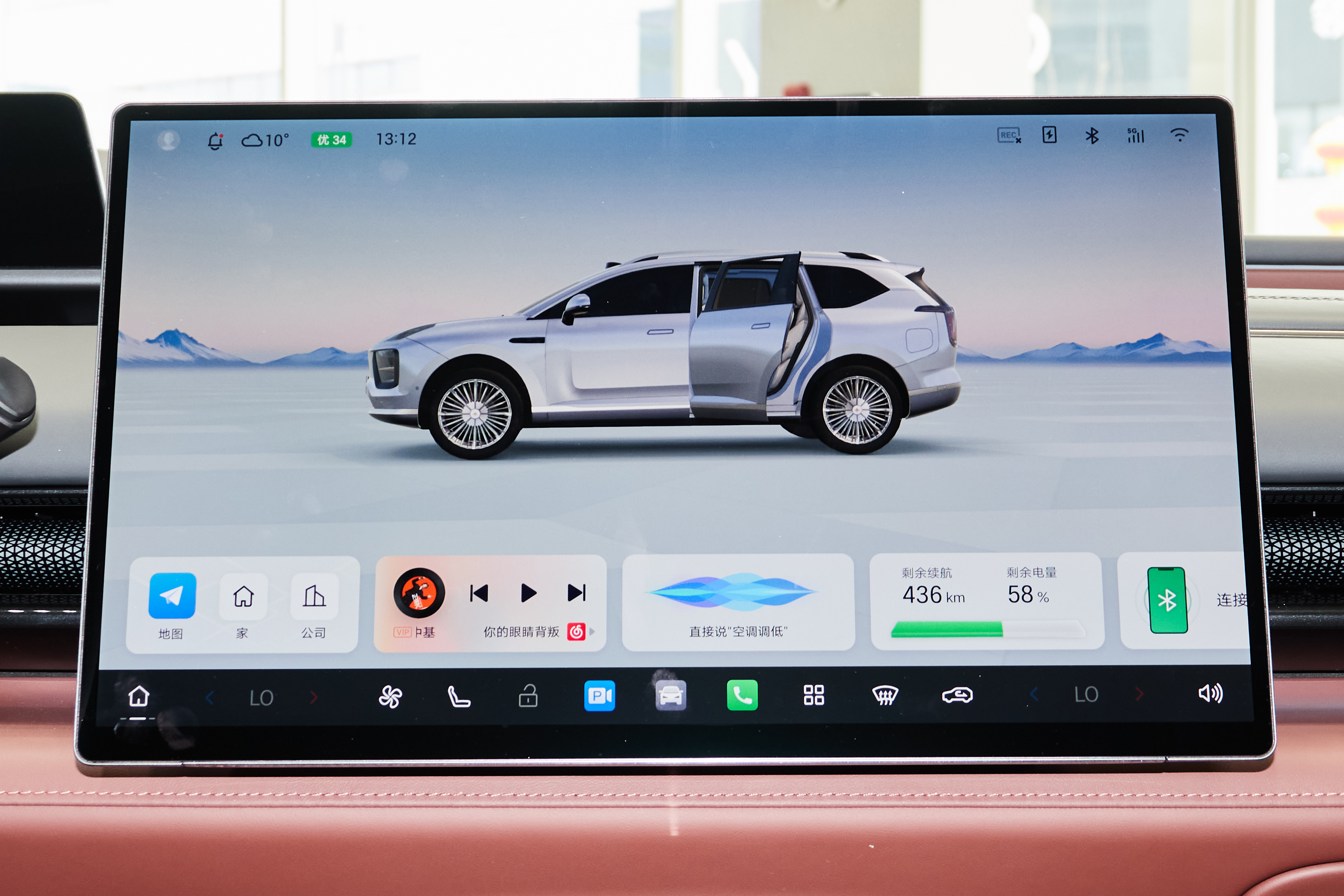 昊铂HL车内采用游艇环抱式座舱,提供赤壁丹霞、冰岛黑沙、大漠沙棕三种内饰主题。中控台配有Nappa真皮方向盘、电子怀挡、8.8英寸全液晶仪表、17.3英寸悬浮式3K中控屏以及27英寸全景HUD抬头显示系统。