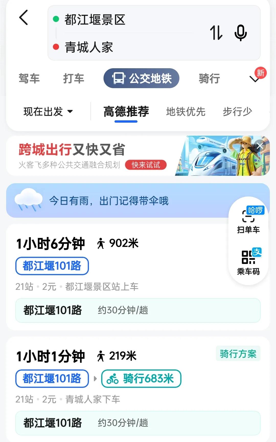 青城山玩完后,可直接通过12306购票,从青城山高铁站直坐到犀浦高铁站,转乘到成都的地铁就回到成都了。