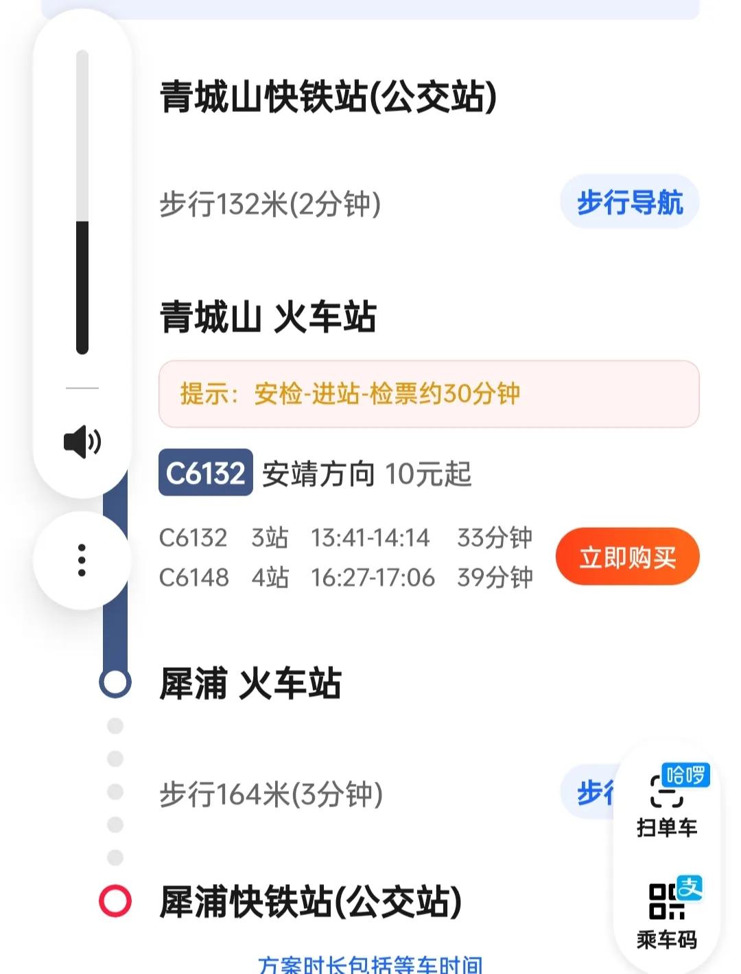 到犀浦站后,可通过铁路12306购票APP,或车站窗口购去都江堰的城际快铁的车票,车次随时都有,平均每半小时有一趟,票价10元。