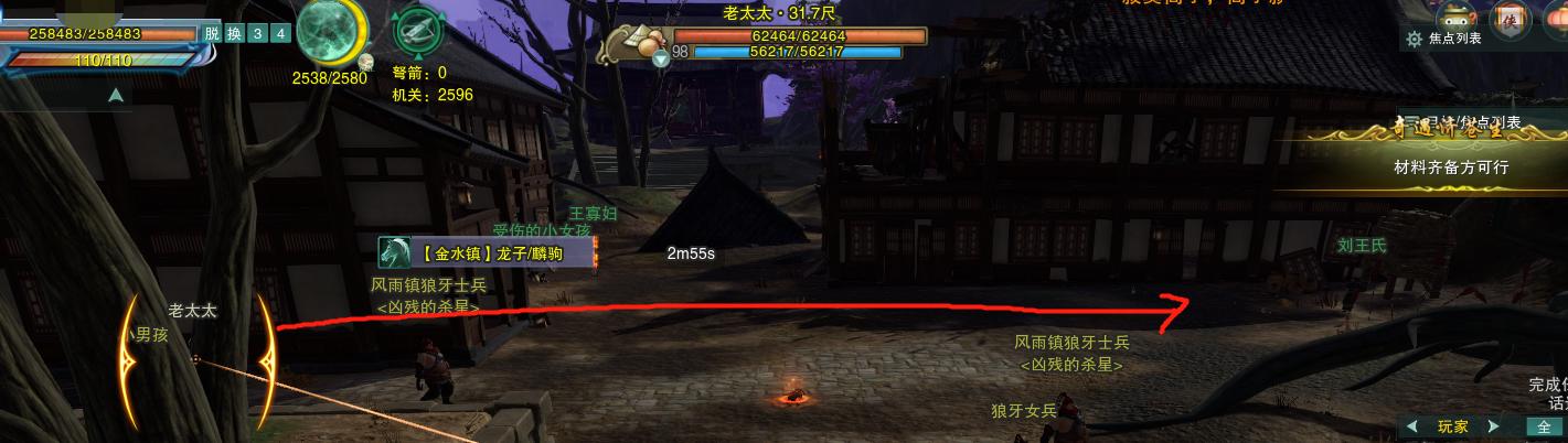 去找旁边的NPC【刘王氏】对话,还有风雨镇镇民、老太太,一共三个。