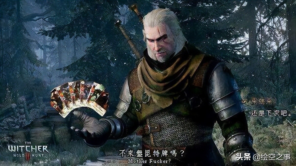 出自《昆特3:狂赌》(玩个梗,勿喷),游戏中允许玩家随时随地和NPC进行昆特牌比赛,这就导致游戏中对于昆特牌的对话有时候特别搞笑。
