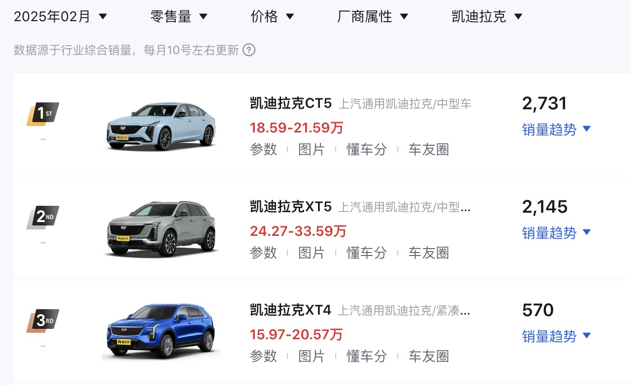 参考销量来看,凯迪拉克XT5今年2月销量为2145辆,位列当月中型SUV销量榜第29位。在销量趋势方面,自去年12月达到近半年的销量高峰后,XT5销量进入下滑趋势。不过在凯迪拉克品牌内部,XT5系列仍是该品牌的主销车型之一。有关凯迪拉克品牌的更多消息,我们将保持关注。