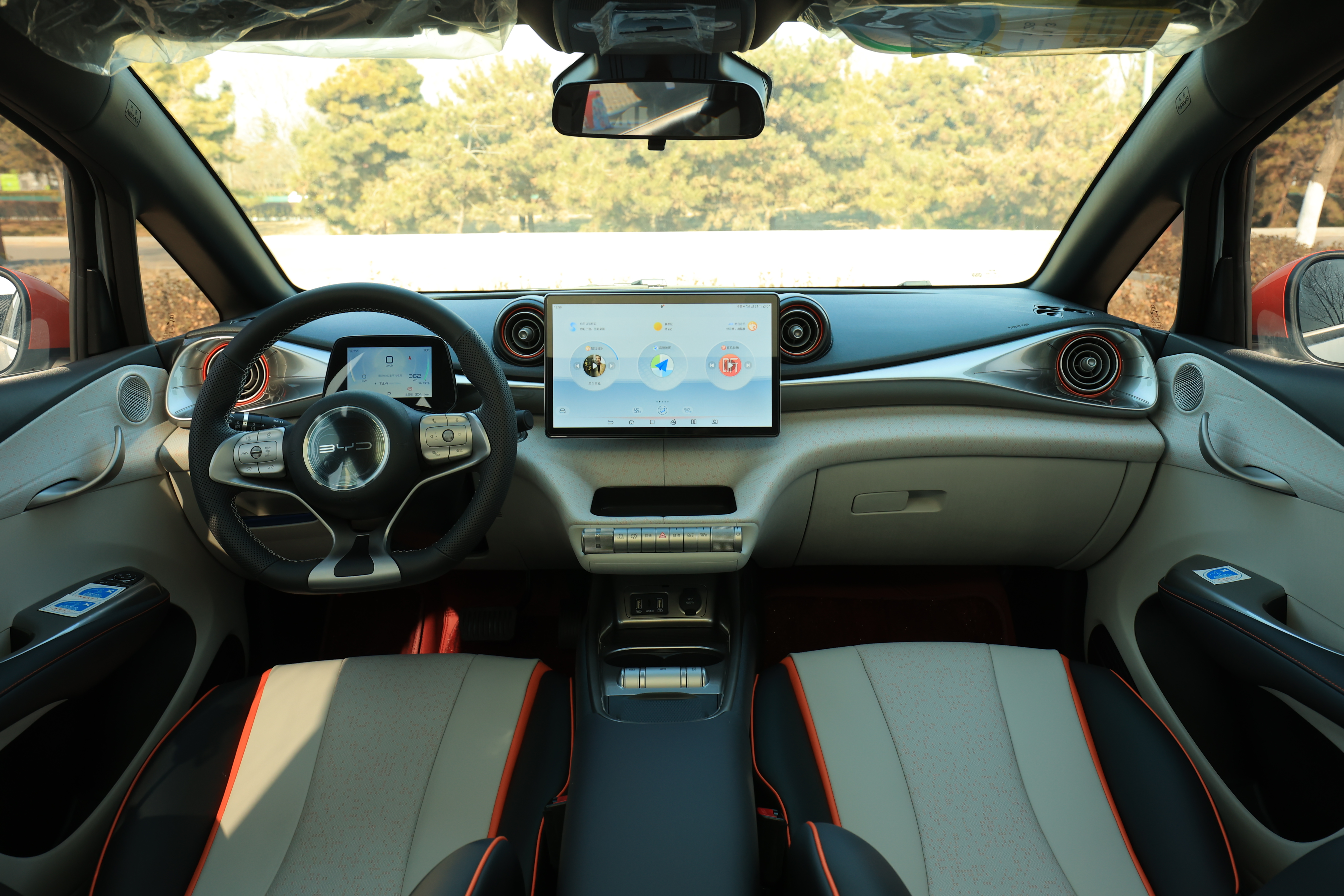 而坐到海豚的车内,和它的外观一样,设计语言非常丰富,像它两侧的出风口造型,和尾灯的轮廓就比较类似,算是一种设计上的呼应。