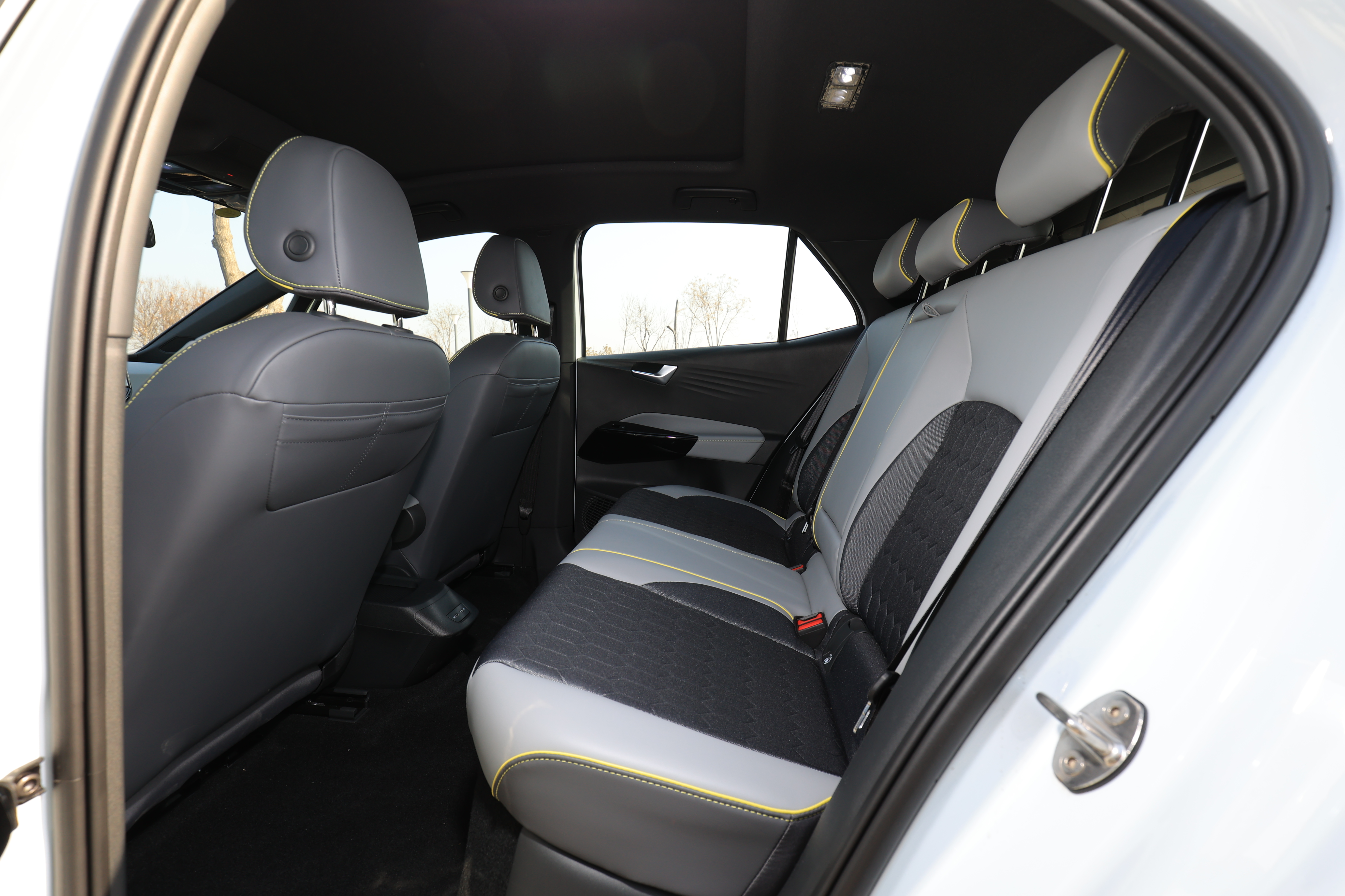 在乘坐空间方面,刚才也提到了,海豚虽然在轴距数据方面相差不大,甚至在纵向空间方面,一点都不输,但在车内实际乘坐后,还是体现出了差异。一是坐垫的长度比起ID.3略短,腿窝的位置,多少会有种空荡荡的感觉,其次臀点处的下陷感、靠背的角度,甚至连后排的充电接口,都是ID.3,体现了它作为传统大厂的造车经验,因为ID.3后排配了两个Type-C的充电接口,而海豚只有一个。如果说海豚是一位家用代步的好手,那ID.3则是在它的基础上,更适合长时间的长途乘坐。