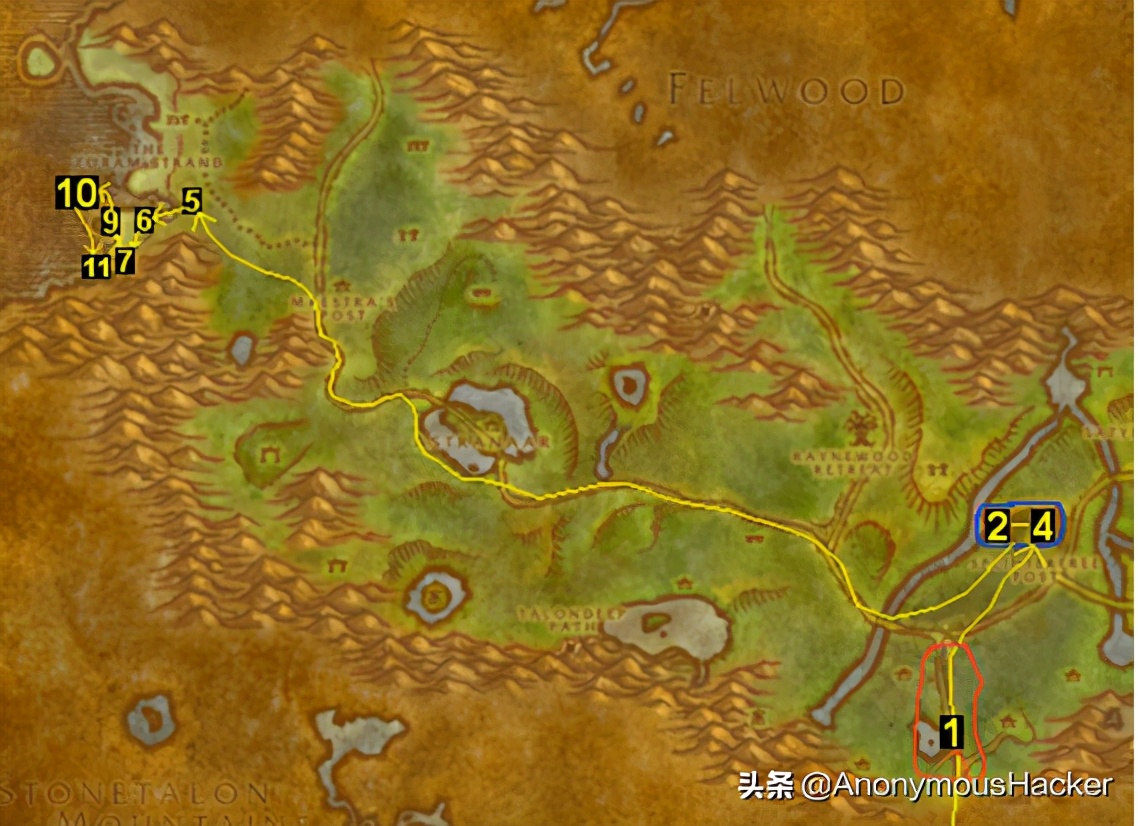 29.沿路往南跑,做"科卡尔半人马的进攻"任务,坐标(48.79)然后在坐标54.75处交任务.
