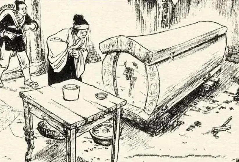儿子不忍心让父亲裹着一张破草席入葬,于是跑到山上去挖掘珍贵的药草,没想到一不小心失足从山上跌落摔死了,家中一贫如洗,现在又相继失去了顶梁柱,两父子的尸首都只能停放在门前。