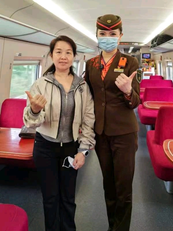 了解情况后,列车长杨惠娟冷静处理,她先及时将旅客安排在餐车就坐,随后为张女士查询后续列车并详细告知旅客换乘的方法。