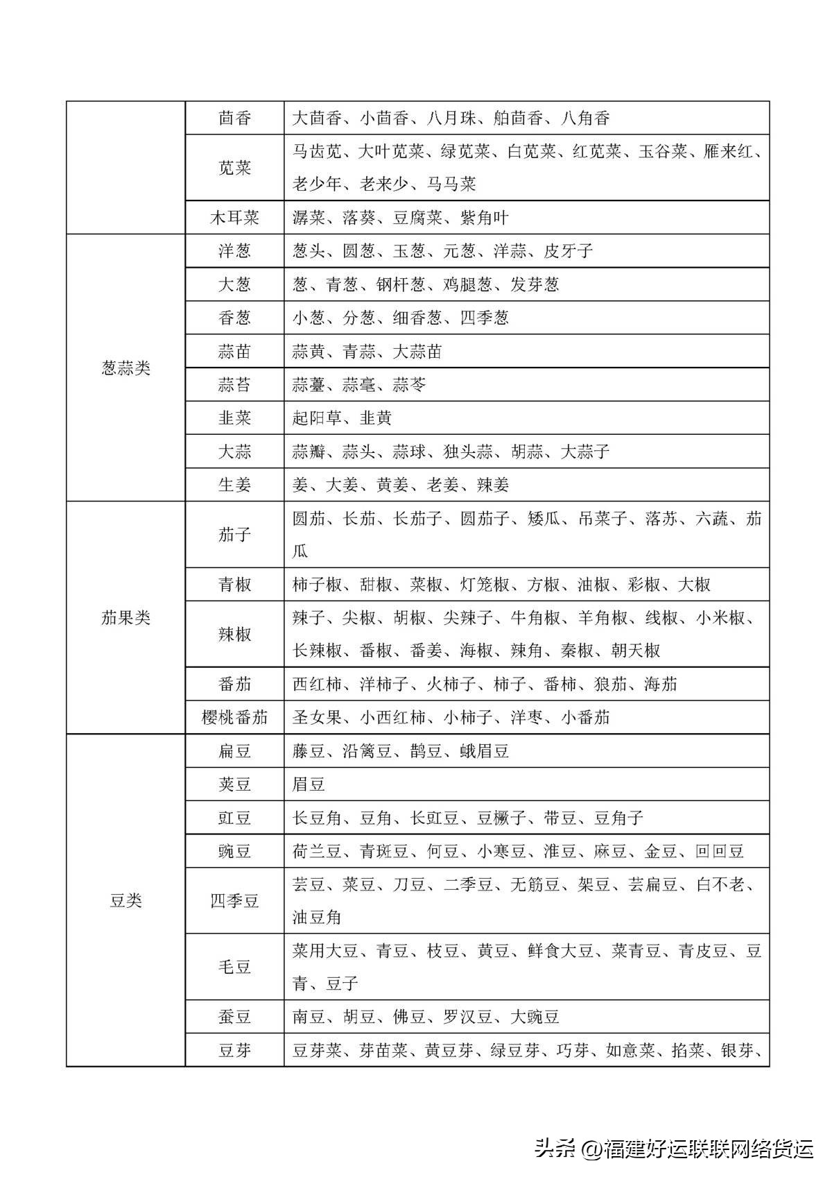 小编也为大家整理了交通部给出的最新鲜活农产品目录和常见果蔬别名目录,建议卡友们收藏喔,不确定的适合看看。