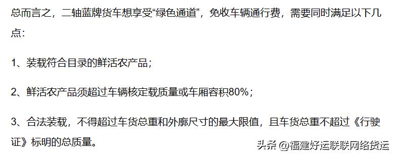 今年年初,交通运输部办公厅会同发展改革委办公厅、财政部办公厅、农业农村部办公厅就曾印发《关于进一步提升鲜活农产品运输“绿色通道”政策服务水平的通知》,第三条再次明确指出:享受“绿色通道”政策的二轴货车,车货总重还应当不超过《行驶证》标明的总质量。”
