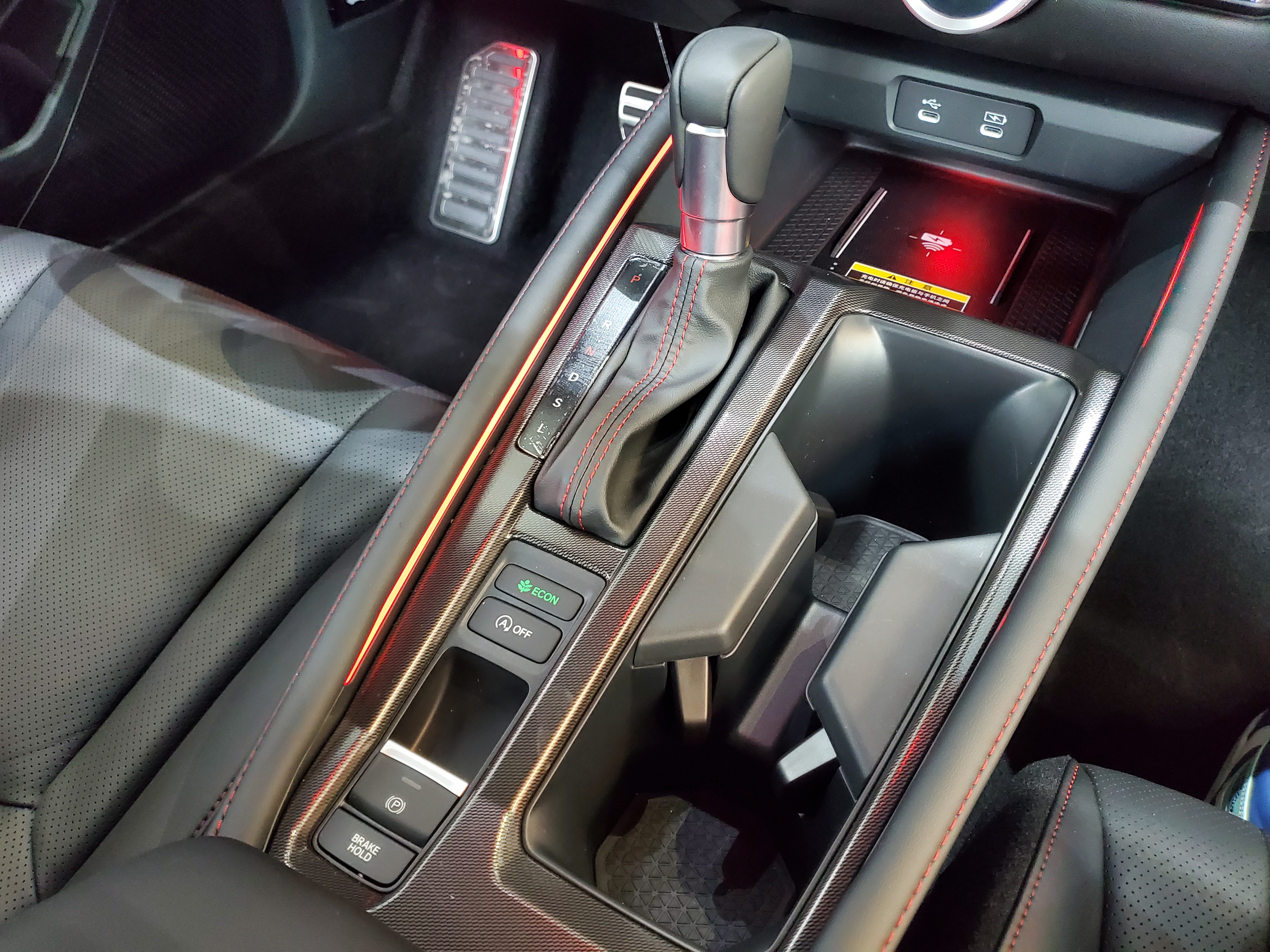 内饰方面,新车与本田思域本田型格的设计语言类似,采用了一块12.3英寸的悬浮式液晶中控屏幕和一块10.2英寸的全液晶仪表盘,屏幕下方空调出风口设计在了同一水平面上,左右贯穿,使得整个中控区域层次分明,新车采用了较为传统样式的档把,档把右侧设有两个水杯架,前方为手机无线充电区域。