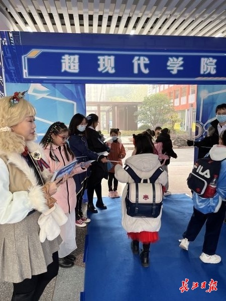 孙悟空、锦衣卫、爱莎公主、穿靴子的猫……学生们精心装扮成“我最喜欢的书中人物”,根据服饰装束类型分别穿越进入校门口的“古魔法书院”“超现代书院”两扇拱门,从老师手中拿取一份《录取通知书》。