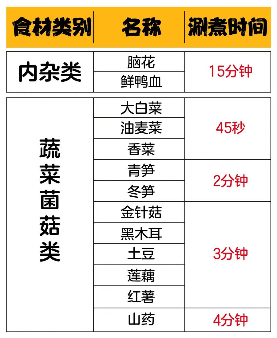 因此,掌握好火锅食材的涮煮时长,可是一门大学问!