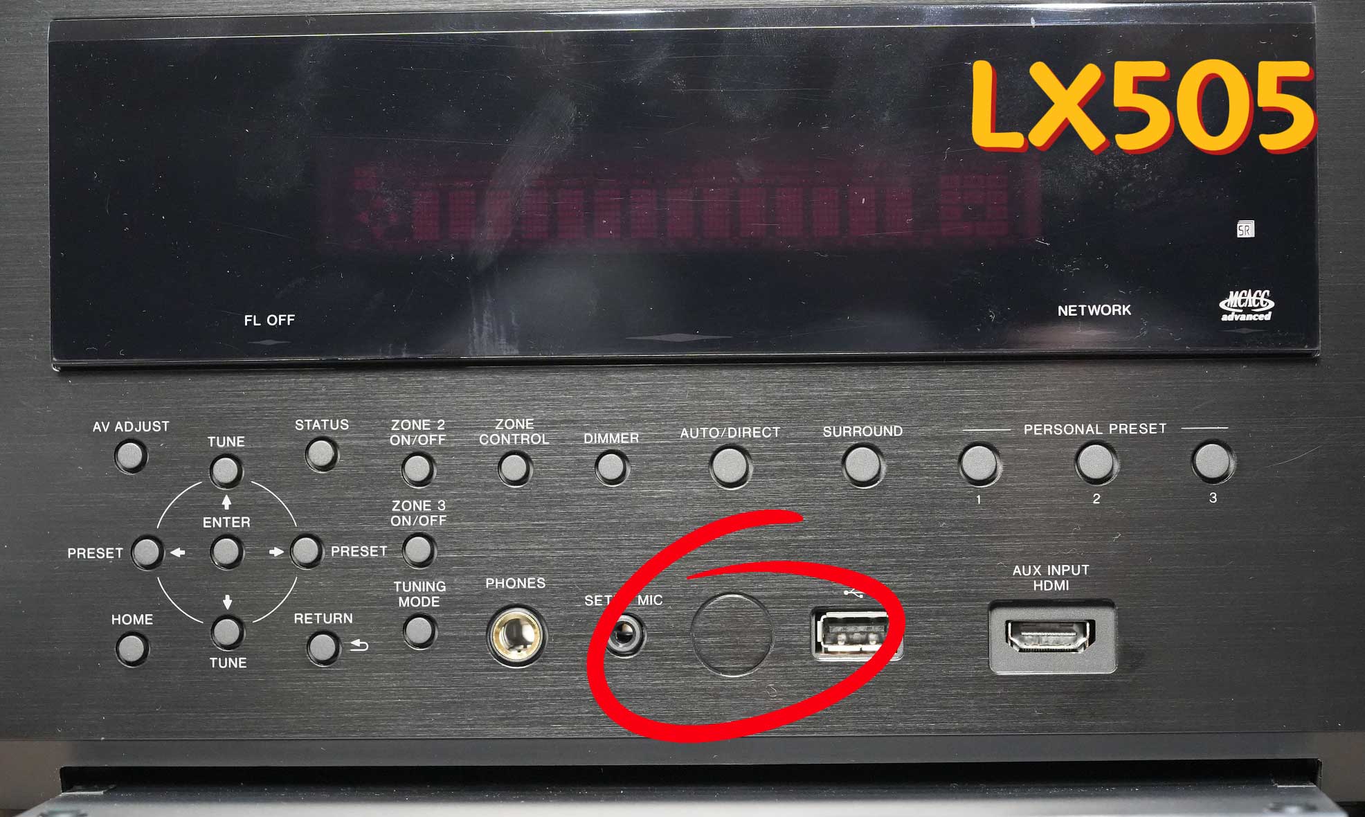 前面板上面还透露出一些差别,比如他们的先锋自动声场修正技术MCACC版本是不一样的,LX505是ADV版,而LX805是PRO版。