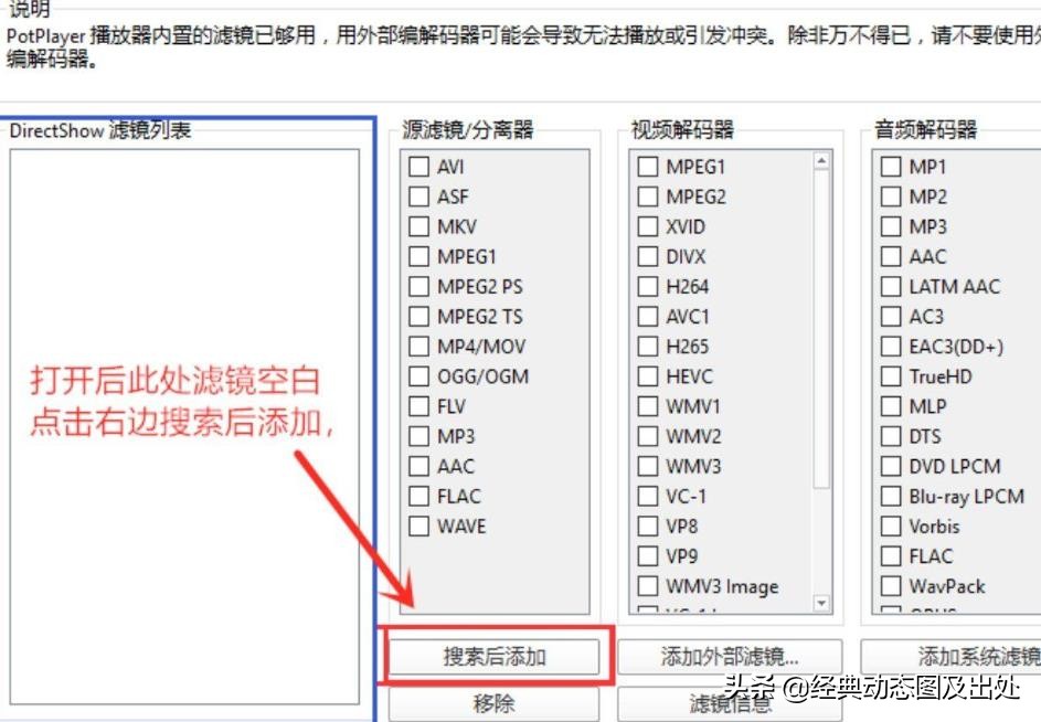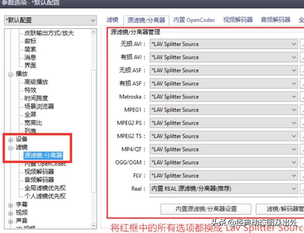 关闭Potplayer内置的滤镜,这步最为重要,鼠标点击左边切换至滤镜选项卡,防止 Potplayer对视频进行有害处理,如果不关闭内置滤镜会怎样?如果不关闭Potplayer内置的渣渣图像滤镜,数据在传递给madVR视频渲染器之前就已经从 10-bit 砍成 8-bit了, 精度损失非常大,那么你的madVR渲染器精度再高也是白搭。