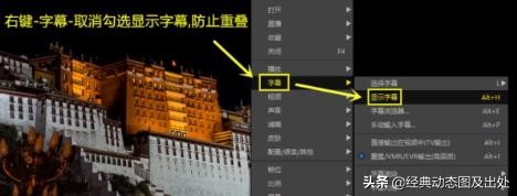 前面设置好了madVR视频渲染器专用的字幕插件,所以要关闭 PotPlayer内置的渣渣字幕插件,否则就会出现两行字幕,只需鼠标右键-字幕-取消勾选显示字幕即可。