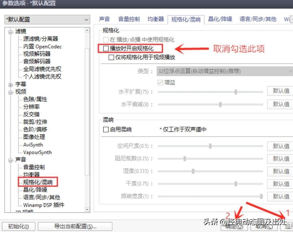 音频解码器LAV Audio Decoder启用混音功能,然后输出扬声器配置选择Stereo即可