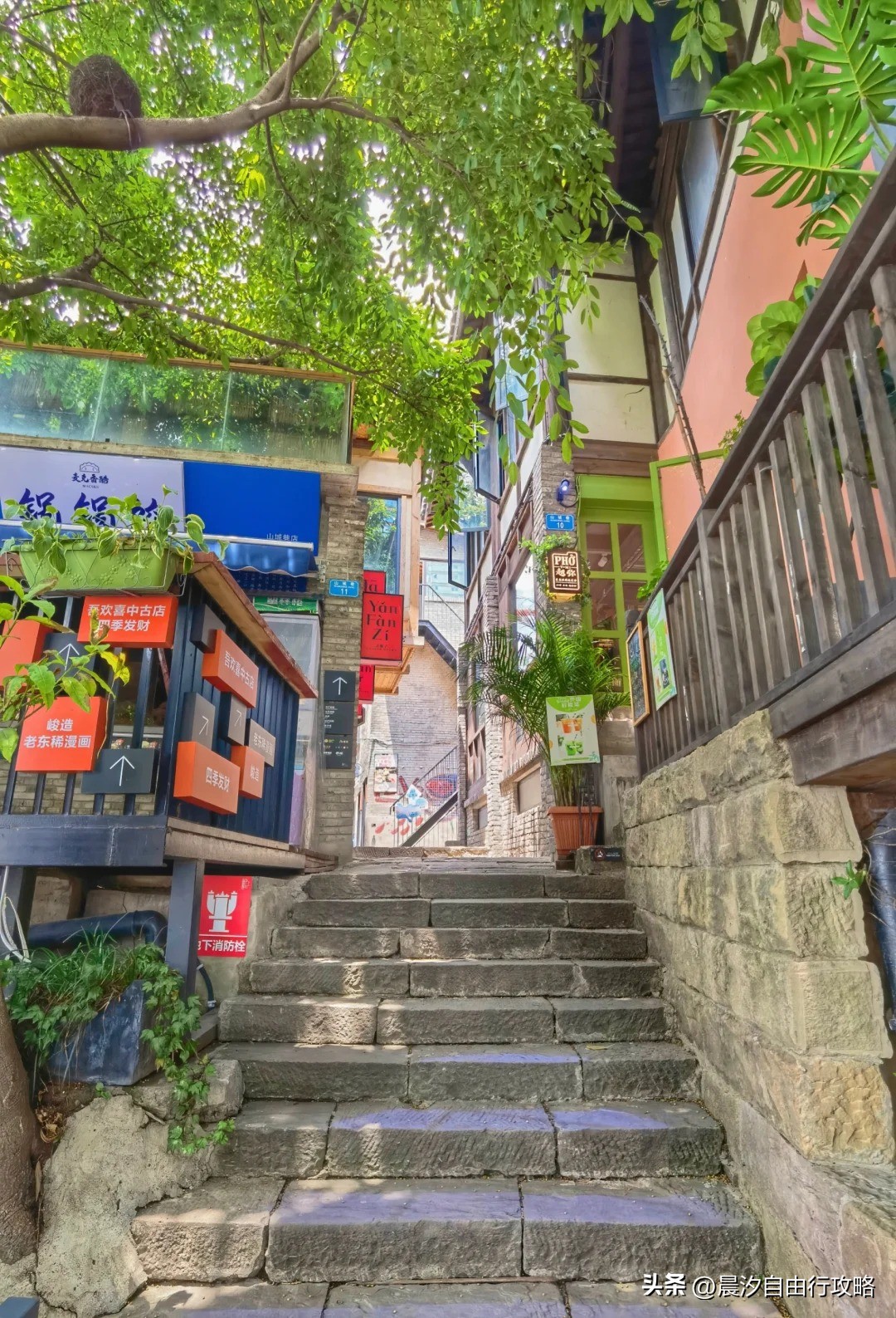 下行入口位于领事巷:1号线七星岗1站号口出站,导航“领事巷”,步行也要10分钟。从这儿进入,沿着步道一路往下走,一点儿也不累,轻轻松松的就可以逛完全程。