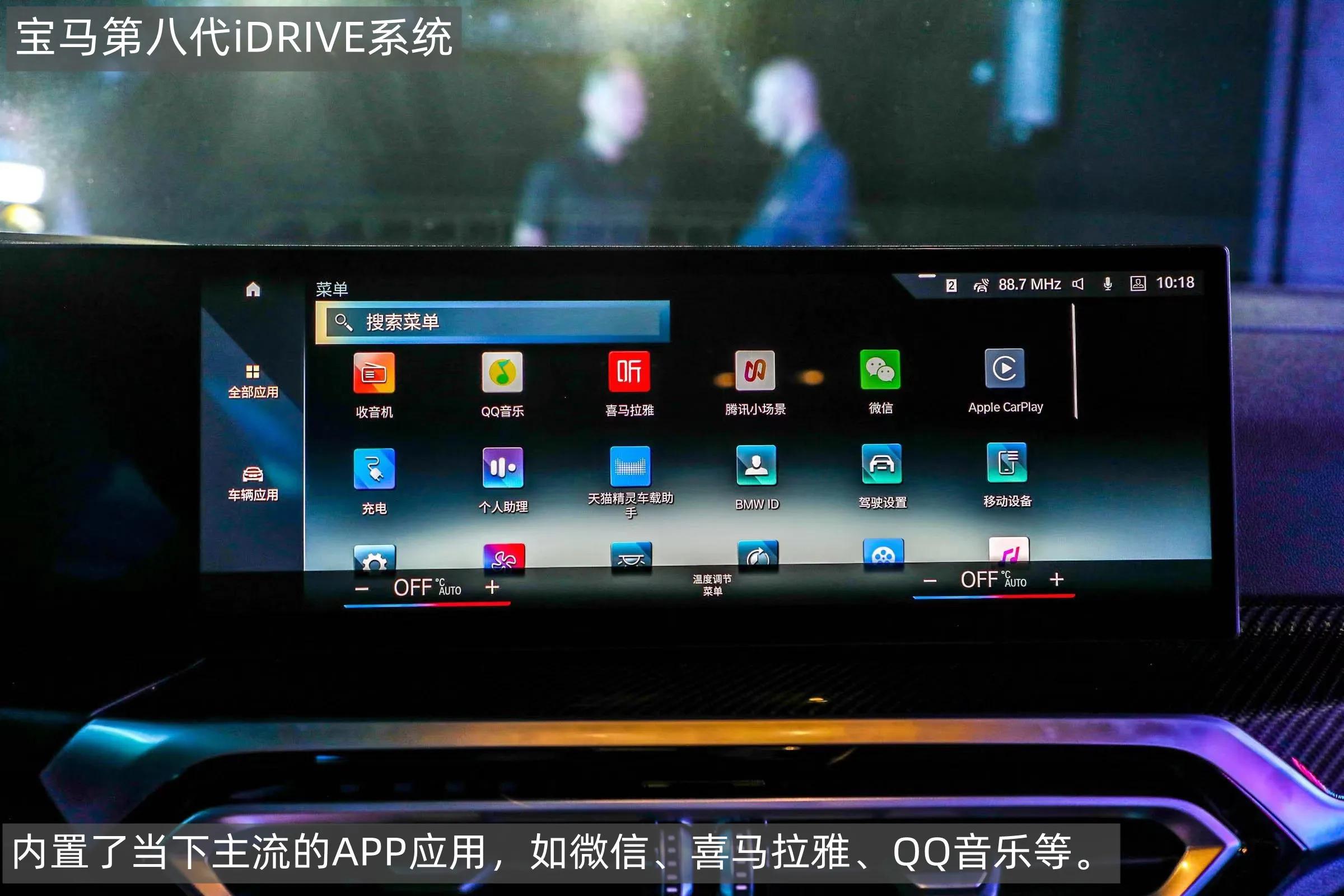 MENU按键保留了传统的MIB菜单键,内置了收音机、电话、导航、驾驶辅助系统、媒体、App-Connect、车辆、声音、空调、设置、账号等功能。