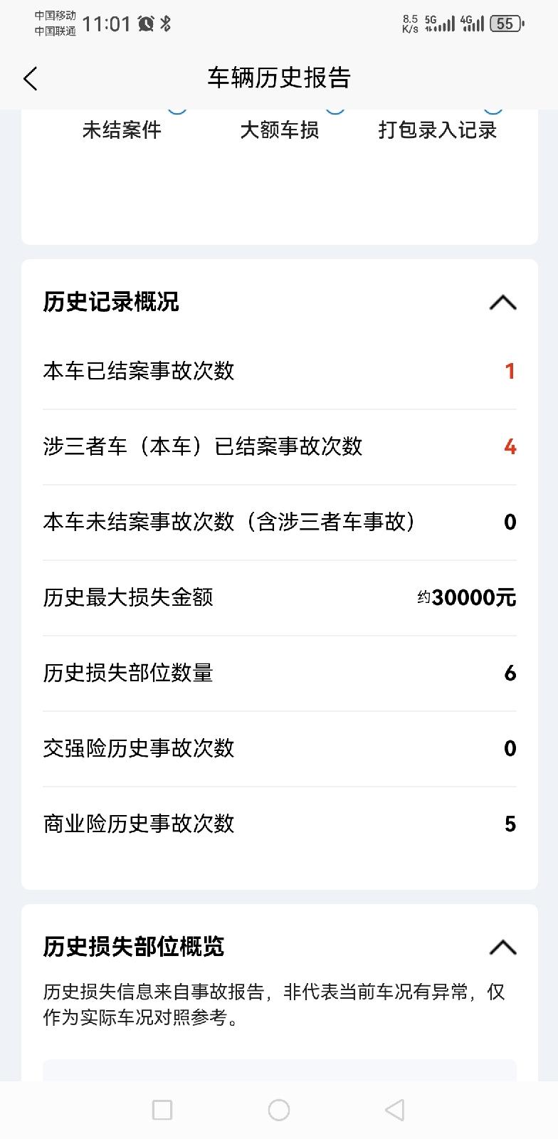 将就手续证件都在,开始检测前我就先把这台车出险记录查了下,结果出来后发现车辆一共有六次出险,但是最大出险金额仅为3万元,按这个记录来看的话,基本上车子大问题应该是没有的。