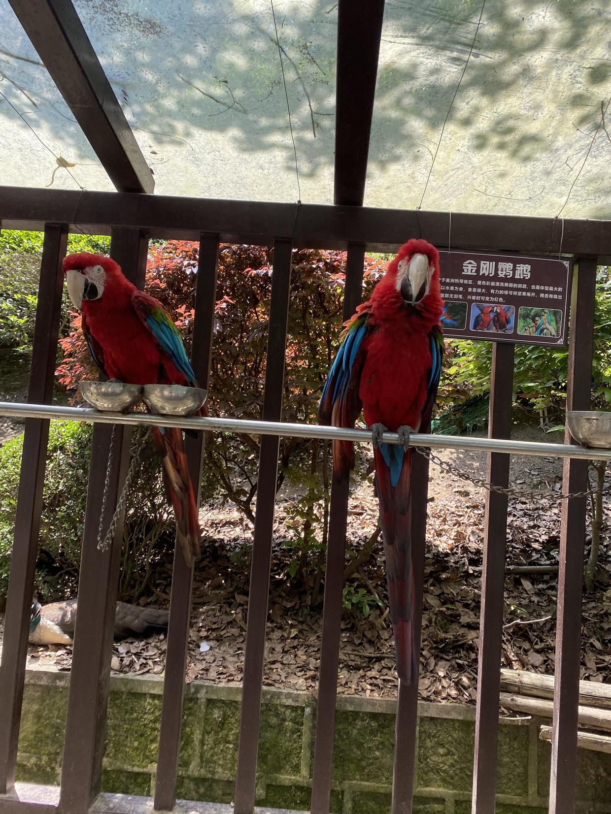 逛完大禹纪念馆,下一站到百鸟乐园,就徒步过去了,大概走了近1Km到达目的地。这里还是挺大的,挺空旷,里面可以游览的景点就三个,景点与景点之间是都挺远。来到了百鸟乐园,首先看了一排各种品种的鹦鹉。