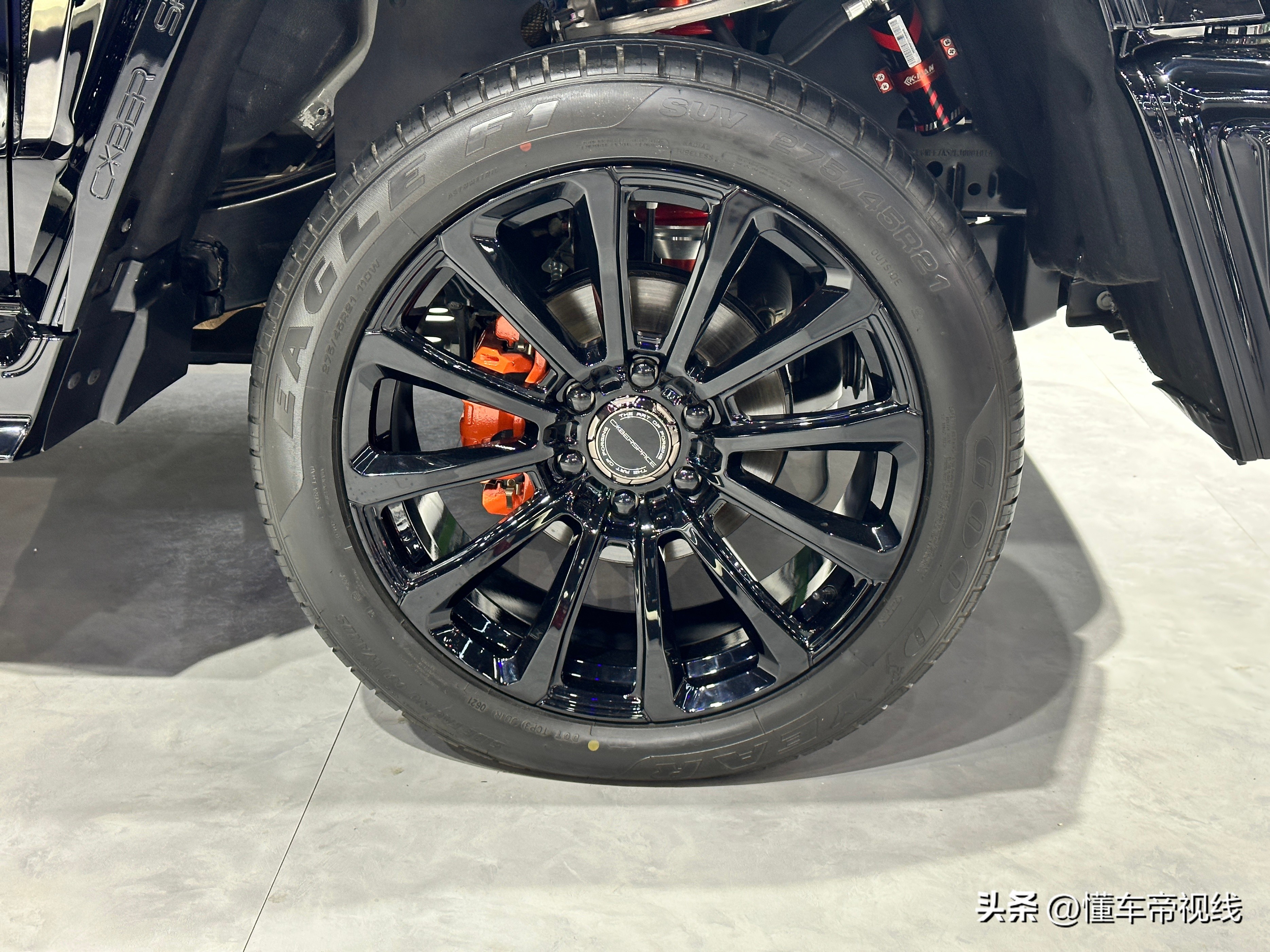 新车配备21英寸锻造轮辋,可以减轻簧下质量。同时,赛博骑士还将采用原厂匹配的氮气减震器,底盘上摆臂、半轴、后桥等连接件也会进行同步调整。原本坦克300上的外挂式备胎替换为后置收纳箱,外盖板还配备了液压缓降功能,完全展开后可以变成小桌板。