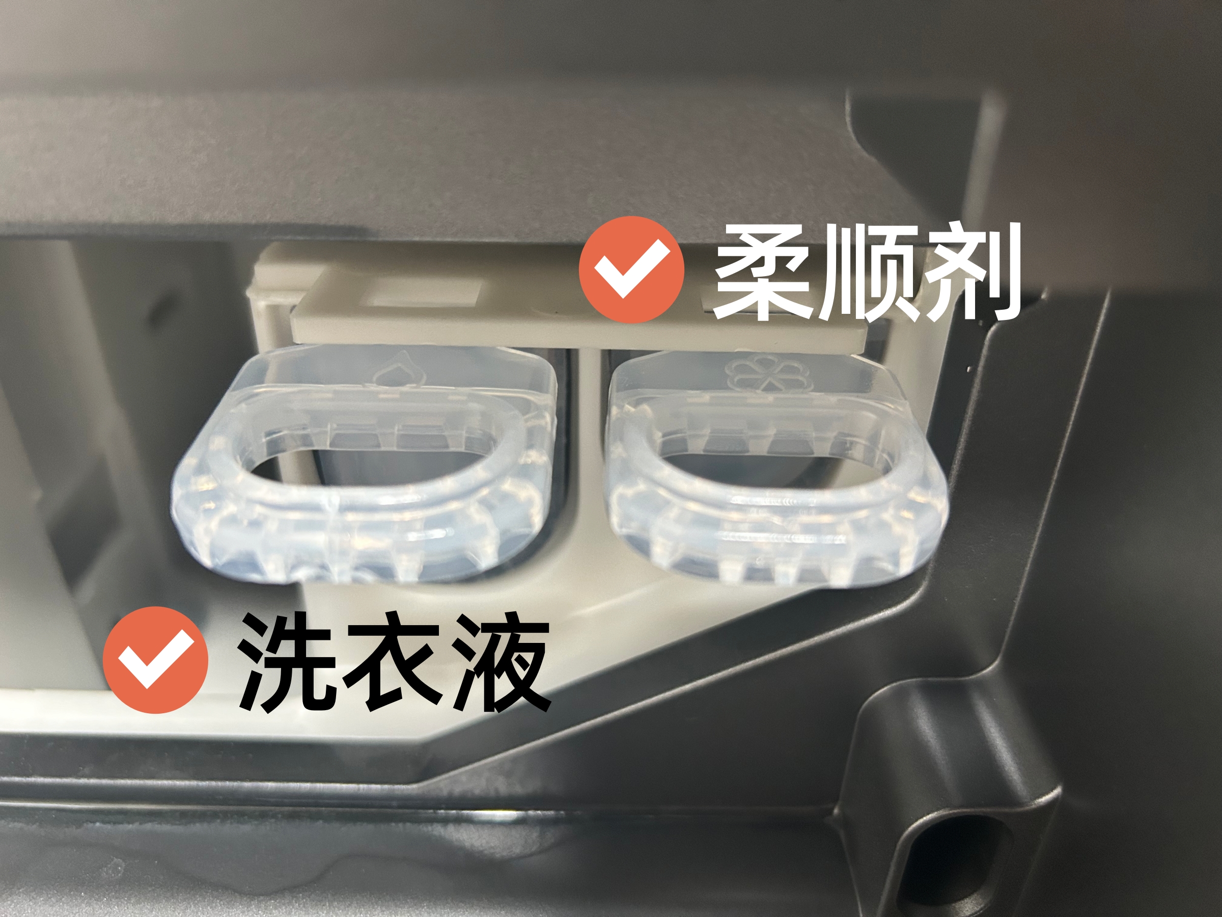 •自动投料盒里没有专门的消毒液专用通道,所以我们需要买衣物专用的洗衣液,加注到柔顺剂盒子里。