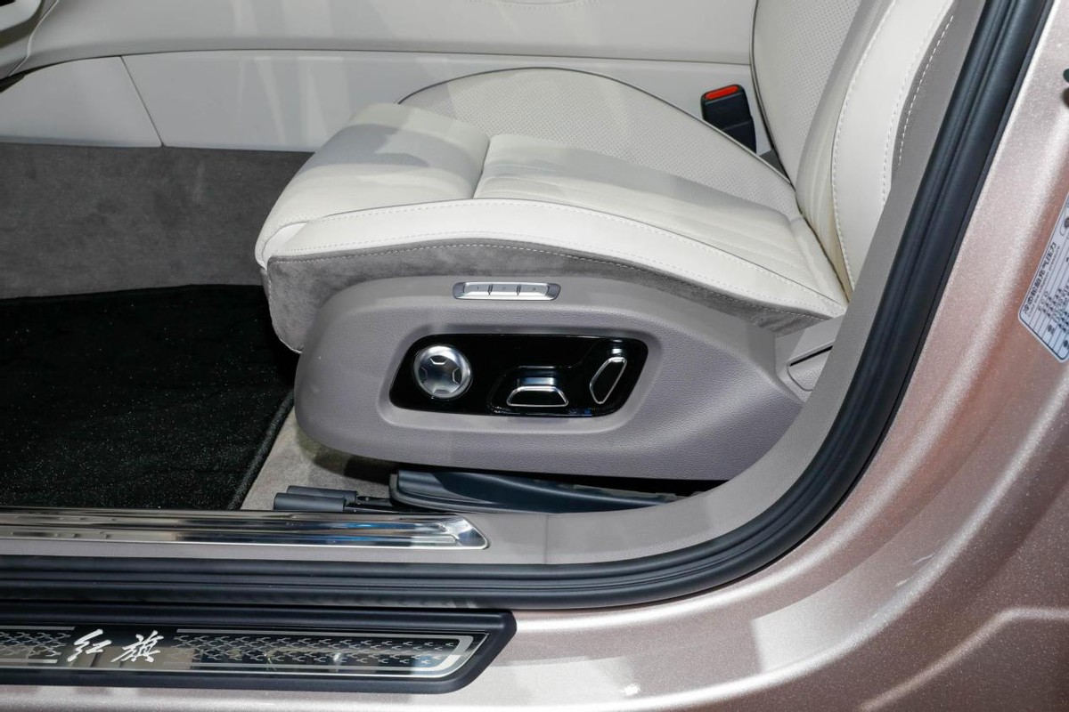 后排乘坐空间毫无疑问是这个级别用户最看重的部分,红旗H9车身长宽高为5137/1904/1493mm,轴距3060mm。这个尺寸放在同级别并不输给56E,相比腿部空间,外观溜背造型对头部空间的影响并不大,身高183cm坐在后排并不会感到头部空间压抑。作为全系的次顶配,这台红旗H9前后排座椅都带有加热、通风、按摩的功能,全系标配BOSE扬声系统,且带有主动降噪的功能;全车采用双层玻璃覆盖,具有更出色的隔音静谧性,车内氛围灯具有253色调节效果,座椅材质是Nappa真皮,这是横向竞品所不及的。