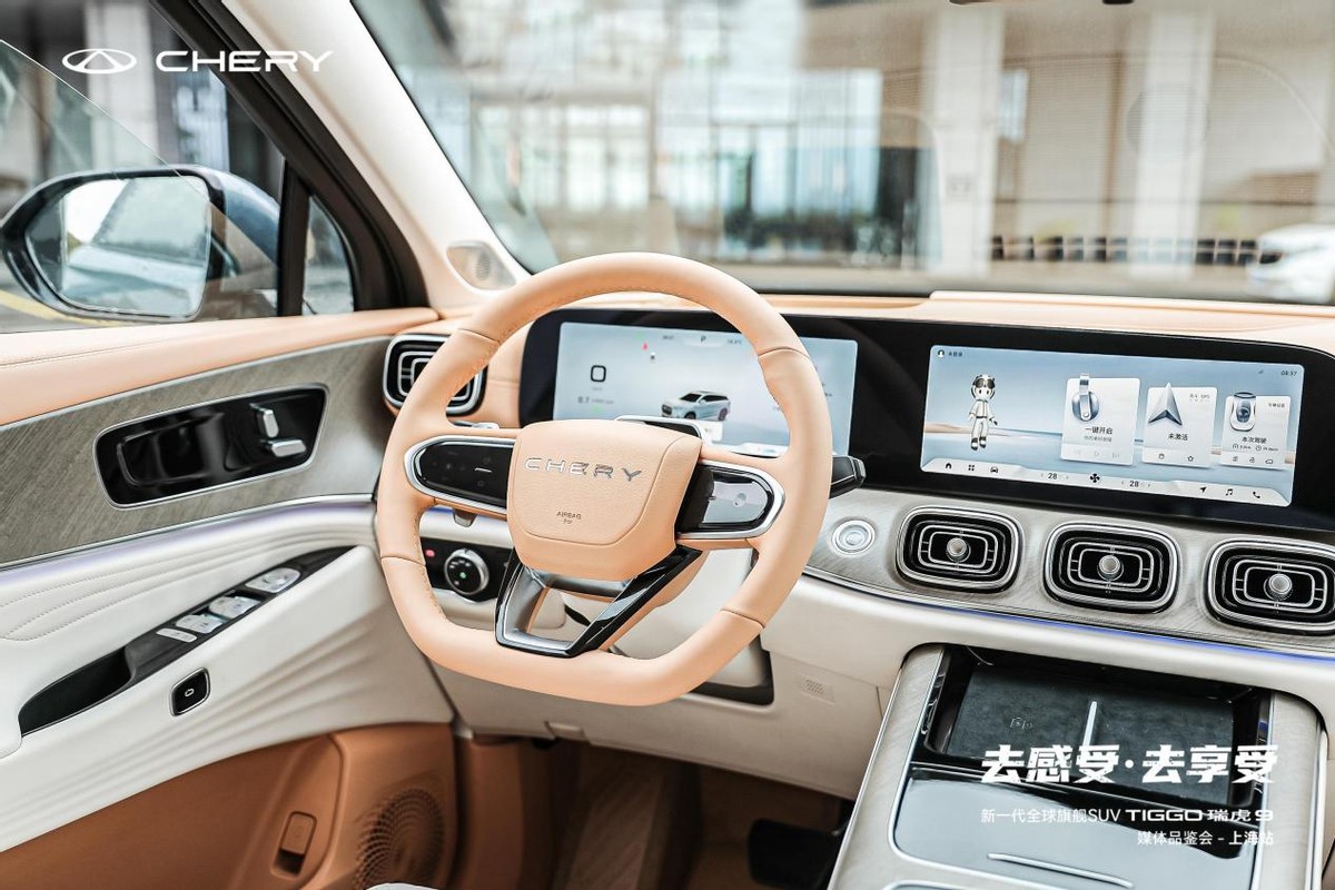 内饰方面,瑞虎9带给了我惊艳,尤其是我们的试驾车采用的是非常显示高级感的米黄色浅配色。