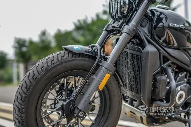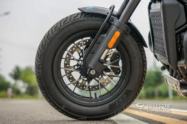 搭配的轮胎为前130/90-16,后150/80-16的正新复古厚胎,外加一套经过切削处理的多辐铝合金轮毂,观感上也很符合复古巡航的姿态。