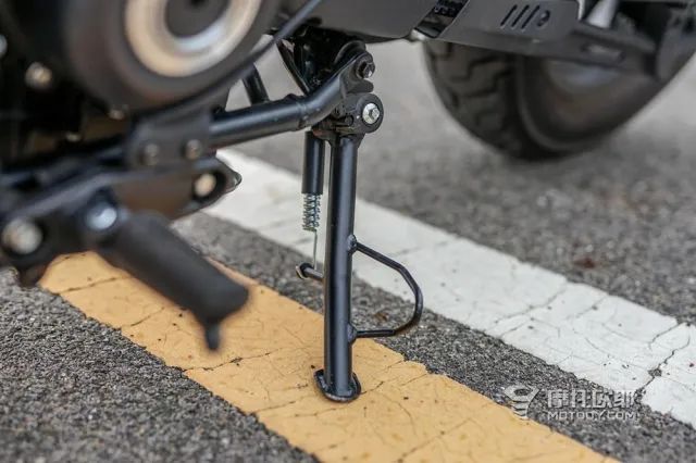 这么设计的好处是可以让车辆在停车时的抗横风能力更强,不会被风轻易刮倒;坏处是对于身高“不高”的摩友来说,这反而会加大挪车和上下车的负担,因为把车扶正时,我们要用更大的力气,建议大家根据自身情况购买侧梯加高垫块,身高175以上的摩友可以无视这个问题。