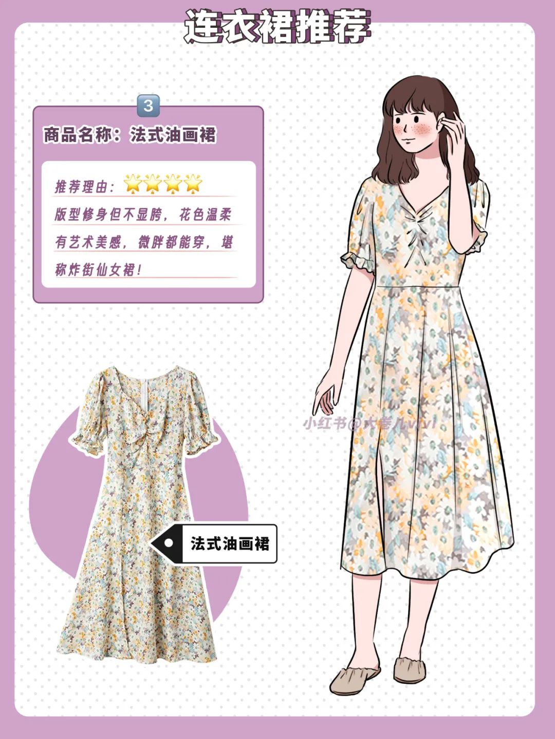 本期我个人最爱的一款法式裙!美其名曰“油画裙”,花色太浪漫啦!相比普通碎花要吸睛许多,穿上它整个人都变得温柔起来。
