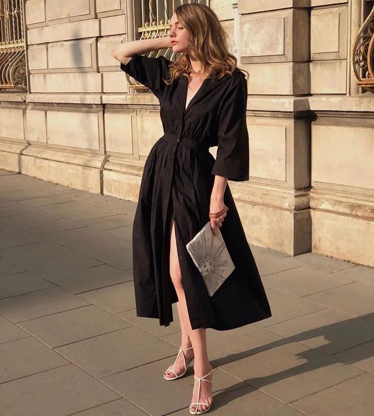 如果对白色有顾虑,那么小黑裙绝对是宇宙无敌显瘦微胖梨型必入!今年貌似很流行这种赫本风的裙子,款式也很多,V领、方领、彼得潘领都有,以短袖+收腰+中长款为主。