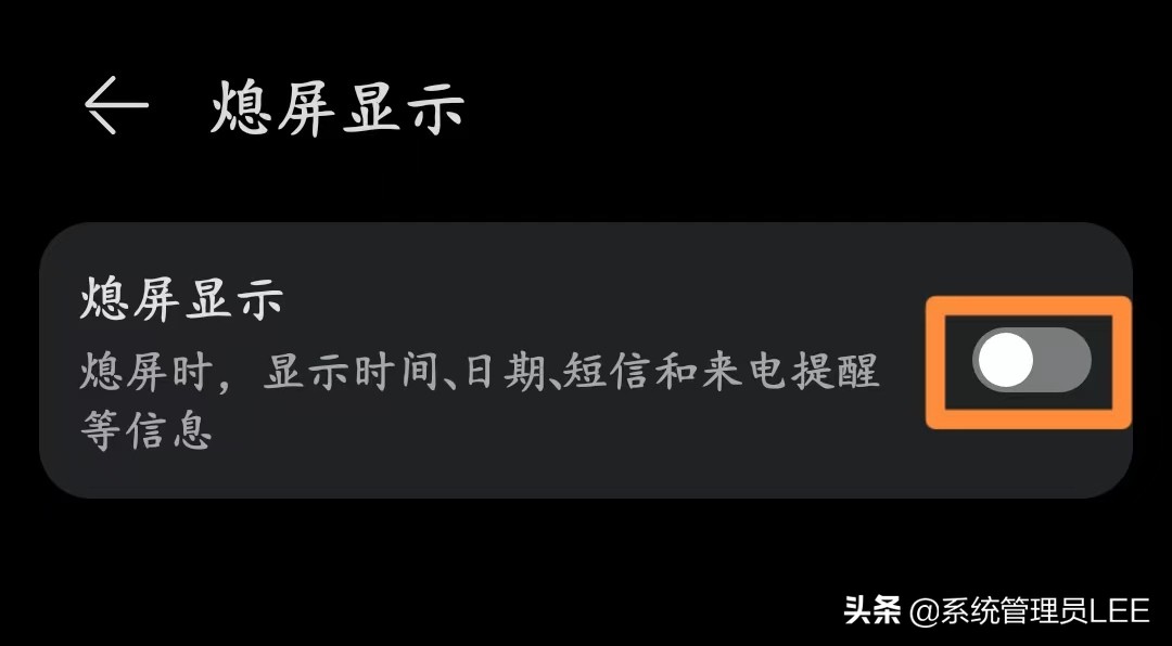 5、关闭熄屏显示,如果开启熄屏显示会消耗一定的电量,所以建议大家关闭此设置。