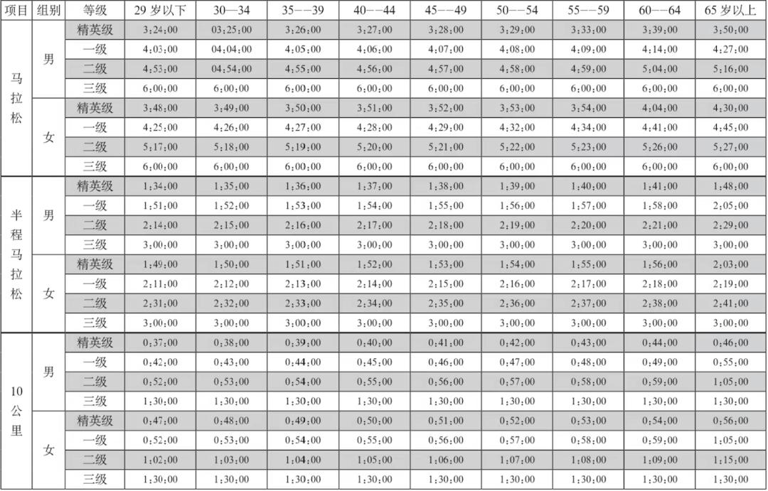 中国田协发布!2022最新马拉松大众选手等级标准!(详细版)